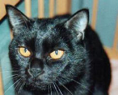 He is a modern breed of black, medium size, round head, round eye and yellow, and he loves living in homes, and he's a very smart cat and he feeds on meat.